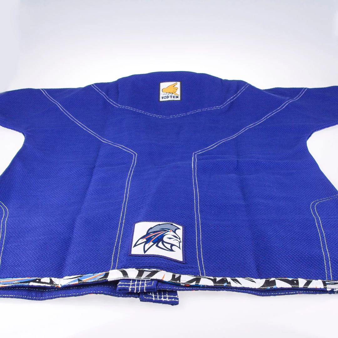 This high-quality BJJ TOP TEN competition Gi with its extraordinary “Mohicans” design have been developed and produced with the support of BJJ experts and according to the specifications of the IBJJF. Also available in white and black.