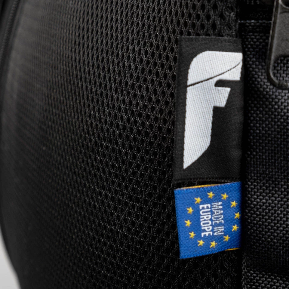 The Fighter universal sports bag is made in the Czech Republic. The material is waterproof polyester. The bag has two side pockets on each side. You can find more pockets inside. The bag can be carried in the hand, over the shoulder and as a backpack. The back straps are in a hidden pocket at the bottom of the bag. The bottom of the bag is padded. There is enough room for carrying all necessary equipment for your training.