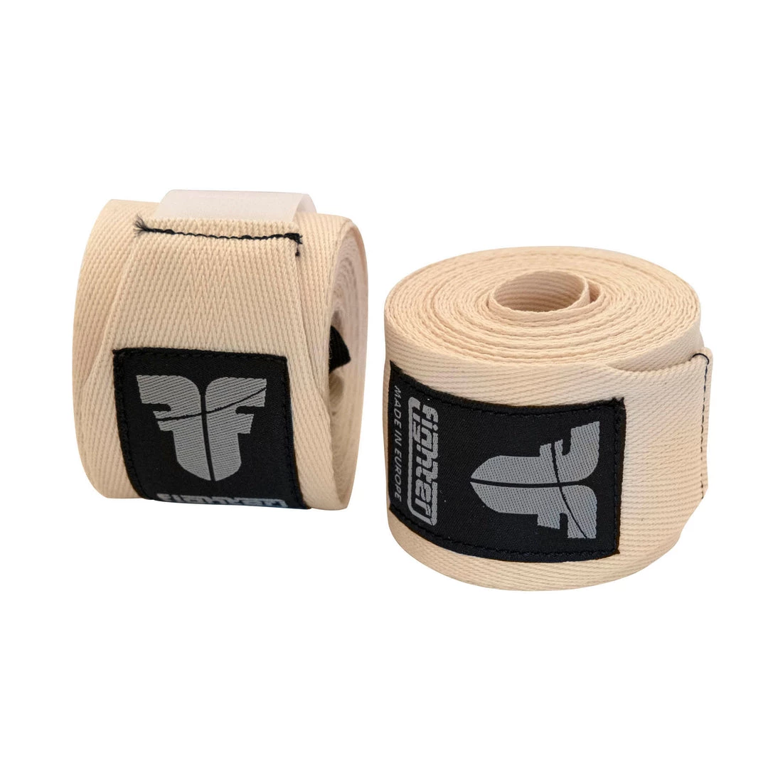 Fighter non elastic hand wraps. It is recommented to wash the wraps before use in order to make them softer.