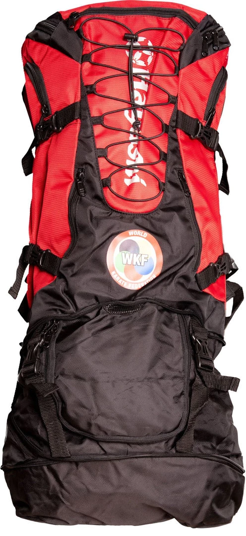 Big, bigger, “Giant WKF” – Hayashi now has the “Giant WKF” backpack ready for everyone who just isn’t big enough. The spacious top loader has a length of 56 cm when not filled and can be expanded by an additional compartment approx. 30 cm long using a zip system at the bottom. Numerous drawstrings give the “Giant WKF” stability and ensure that the load is pleasantly distributed. The Hayashi sports backpack is equipped with multiple organization compartments so that you have everything to hand on the go. There is space for up to 1.5-liter bottles in the narrow side compartments, with which the “Giant WKF” scores particularly well as a companion at sporting events. You can easily pack your sweaty clothes, shoes, or wet towels using the extension compartment’s front-loading system after exercising. A stable mesh insert on the back ensures a constant air exchange and releases moisture to the outside. The Hayashi “Giant WKF” ’s extensive equipment also includes a length-adjustable carrier system and padded contact pads on the back.