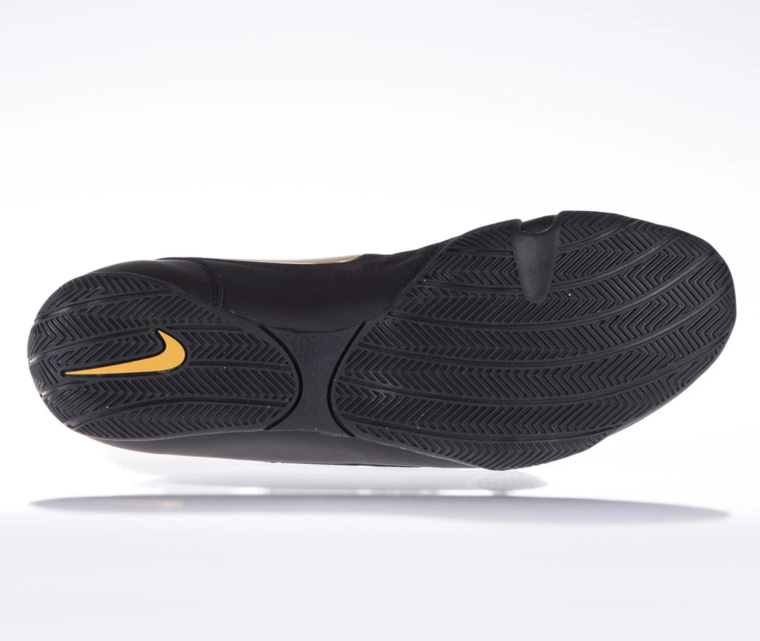 Nike KO Boxing Shoe – black/gold– TRAIN HARD. HIT HARDER – A sold punch starts with solid footwear. Because of this, we improved the shoe’s feel for the floor and traction with reengineered gum rubber soles that are thinner and more sticky.