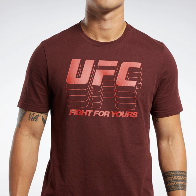 Fight for yours. Share the intensity of mixed martial arts fighting in this men’s UFC t-shirt. A slim cut offers a sporty fit, while the all-cotton build ensures familiar comfort.