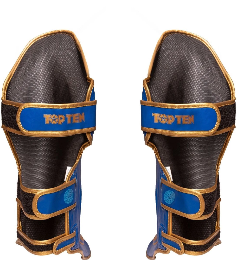 A festival of colors celebrates TOP TEN with the shin and instep guards “Star Light”. The typical TOP TEN Company Print is applied in expressive colors on the black, durable PU artificial leather surface.