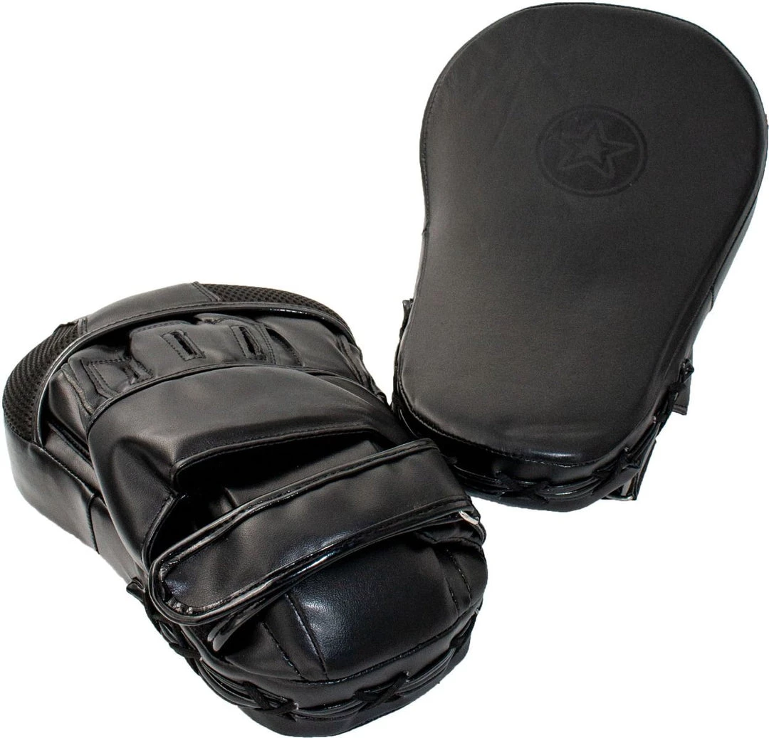 Focus mitts with shaped high density foam padding with palm contour pad. Made of genuine heavy leather.