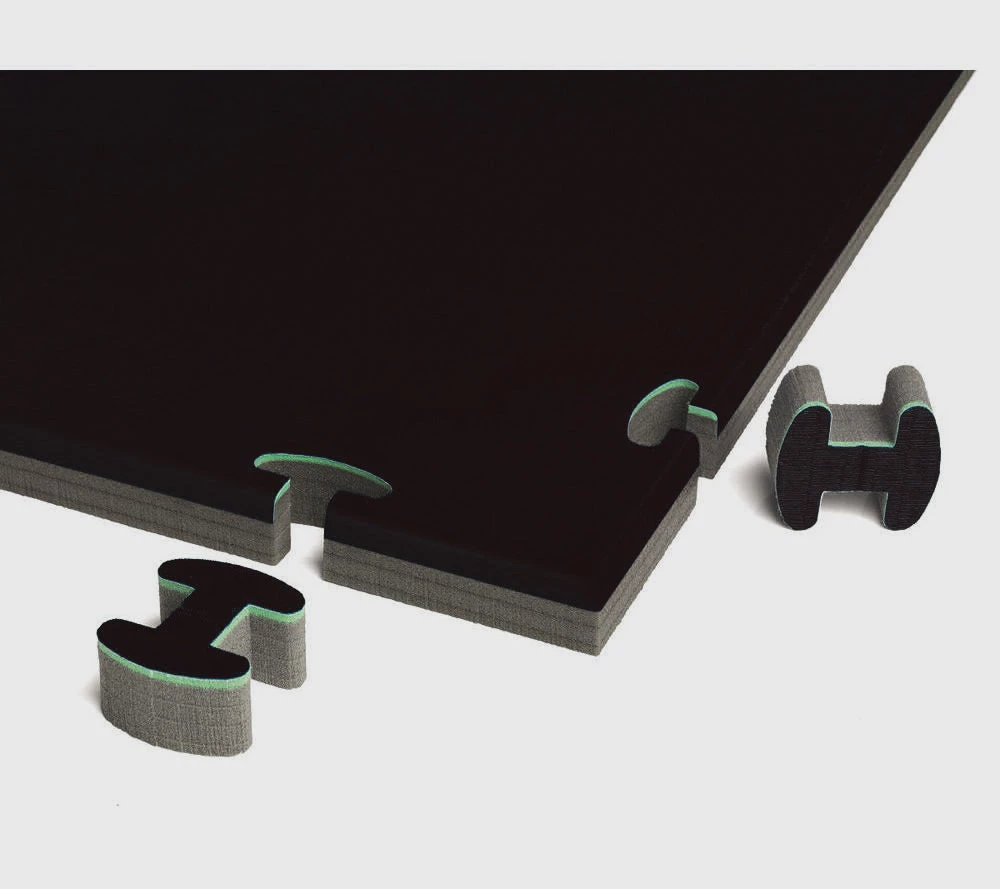The new ProGame TIS concept judo training by Trocellen has been developed to provide training to the maximum levels for the judo, offering the advantages of a traditional tatami with the introduction of some particular innovations. The ProGame TIS concept Judo training by Trocellen is 70% lighter than other traditional tatami in the market. This facilitates assembly and disassembly of the areas, creating play areas with different sizes in a few simple steps and allowing cleaning without problems. The cross-linked polyethylene foam, the surface made of PVC with rice straw embossing and the edges and specially designed rounded corners reproduce the sensation of a traditional tatami, ensuring comfort and long-term safety. The Trocellen Interlocking System (TIS) patent pending makes stable and perform areas without the need of additional frames.