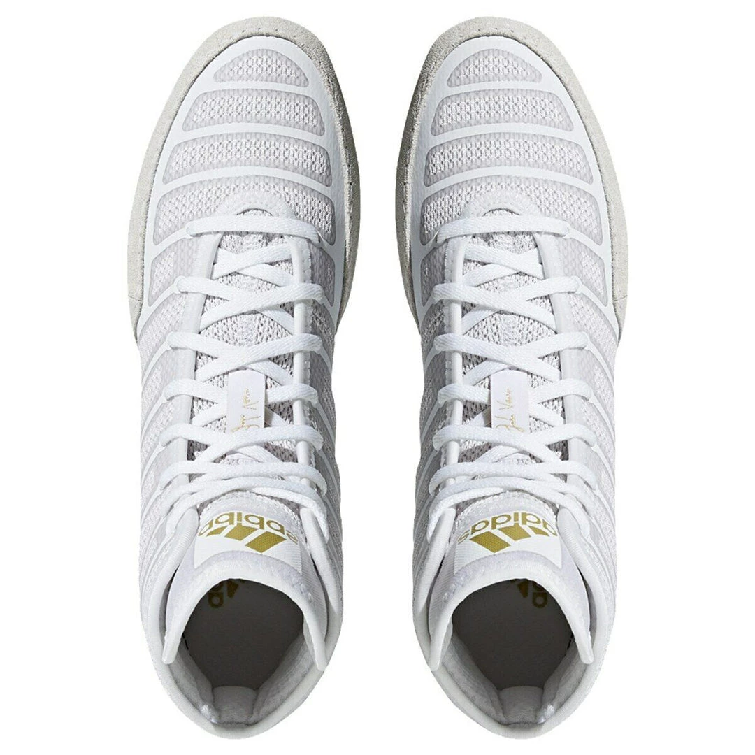 Adidas Varner Wrestling Boots Start your legendary wrestling career in the shoe inspired by a legend in the adizero Varner. The Varner wrestling Boot from adidas is inspired by the 2 time NCAA wrestling champion and 2012 Olympic Gold medal winning wrestler Jake Varner. The upper is made with a One Piece Engineered mesh. This mesh allows cool air to flow into the shoe at the same time as releasing warm air, therefore creating a cool environment for the foot and helping the wearer to remain comfortable and confident as they train. The midsole is made from Die-cut EVA foam which provides much needed cushioning and helps to improve the wearer’s attack stance. The Outsole is made from a Rubber compound which offers superior grip and will help to keep the wearer feeling stable on their feet as well as ready to move around the mat.